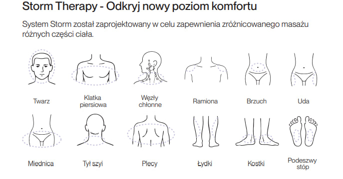 System Storm został zaprojektowany w celu zapewnienia zróżnicowanego masażu różnych części ciała.